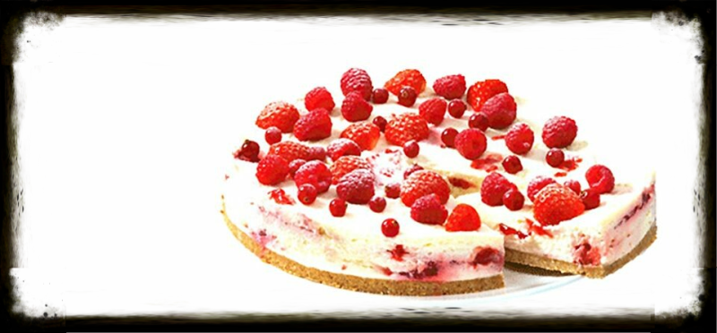4.Spatel de slagroom door het Philadelphia-mengsel en verdeel de vulling over de bodem. Giet het afgekoelde rode fruit op het Philadelphia-mengsel en roer het er met een vork grof doorheen. Laat de taart minimaal 2 uur in de koelkast opstijven.