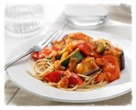 Serveer de ratatouille met (volkoren) pasta of rijst.